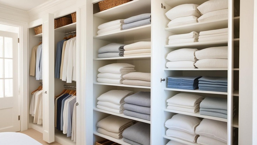 • WHITE MELAMINE SHELVES TO LINEN CUPBOARDS